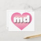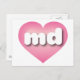 This postcard features a pink heart with a white-washed centre containing the bold, white, rounded lower case letters md, a playful abbreviation for Maryland, the old line state. The reverse side of the card is blank, awaiting your personalised text or handwritten sentiments.