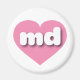 This magnet features a vibrant pink heart containing the bold, white, rounded lower case letters md, a playful abbreviation for Maryland, the old line state.