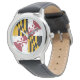 The leather band makes it seem like an “older kids” watch. Easy to read the time. Clear printing and image.