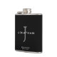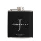 Masculine Black and White Initial + Name Monogram Hip Flask