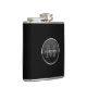 Masculine black with a round glass emblem design name monogram flask.