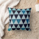 Masculine Blue Black Geometric Triangles Pattern Cushion