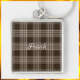 Nice, masculine brown and beige plaid keychain. Add your name to personalise. Nice gift for him!