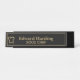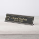 Graphic metal desk nameplate done in black and gold tone, with a golden chef's hat symbol. Personalise the custom text to read what you want.