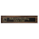Graphic desk nameplate done in a masculine dark wood grain look, with a black and gold text area and a golden chef's hat symbol. Personalise the custom text to read what you want.