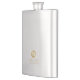 This flask features monogram in gold circle element with name and title in gold professional font style.