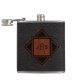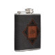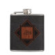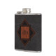 Elegant looking, monogrammed flask- Classy, 3 monogrammed initials on classic, black leather texture look background. Monogram is framed in a mahogany woodgrain pattern square on black and wood trimmed diamond. Ready to add monogram initials for a personalised, masculine gift for him that he will appreciate. Personalise however you like with a message, name, etc. This custom, classy woodgrain look flask design is available in our Zazzle.com/angela65 shop on many different gifts for him. Sophisticated wedding gift for groom or elegant wedding favours for best man and groomsmen in the wedding party, chic retirement gift, or stylish gift for Dad on Father's Day. Kiss up to the boss or a co-worker with this executive gift for gentlemen.