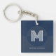 Masculine Navy Blue Geometric Modern Monogram Keychain