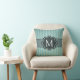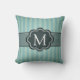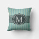 Masculine Teal Blue Stripes Custom Monogram Cushion