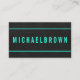 Make a bold statement with this sleek and modern business card design featuring teal text on a dark grey background. Perfect for professionals in various industries, including executives, drivers, mechanics, realtors, barbers, and more. The minimalist design is both stylish and functional, allowing you to showcase your personal or business information in a clear and concise way.