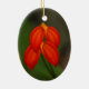 Twin Masdevallia Ignea Orchids framed by the lush greenery of the surrounding garden.