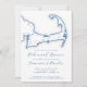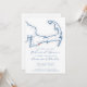 This casual rehearsal dinner invitation features a modern, elegant navy blue Cape Cod map theme, perfect for a wedding in Mashpee, MA. Set the stage for a memorable evening with this chic design that complements your celebration. Ideal for venues like New Seabury, Popponesset Inn, and Willow Bend Country Club. The sophisticated map adds a personal touch to your Cape Cod wedding weekend. Artwork by Coastal Map Designs.