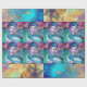 Colourful ,whimsical ,unique, artistic watercolor painting in bright aqua blue ,green,teal,pink,fuchsia,white ,sparkling iridescent colours,golden and silver foil, inspired from Carnival of Venice.2009.