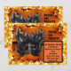 Masked halloween invitation designed for halloween party invitations. Rectangular shaped tool and text template for you to substitute with your own text writing for you party. Design has a pumpkin border which was manipulated into a fractal and surrounded with candy corn border with black masque. Trick or Treats text. You customise the rectangular shaped box with your own text