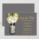 Perfect for a country style wedding or maybe you just love Mason Jars! Mason Jar hanging on a hook filled with country wildflowers. A Cool Charcoal Grey background against the hanging Mason Jar and wildflowers in colours of yellows and white daisies. If you have any questions on this design or want a colour change please email me paula@labellarue.com Also check for the RSVP, RECEPTION and GUEST SEATING Cards to match!