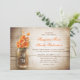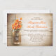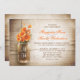 beautiful rustic wedding invitations with distressed wood background and mason jar with orange colour flowers . I suggest a beautiful linen texture paper for this design.