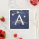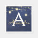 Mason Jar and String Lights on Navy Blue Night Sky Monogram Name and Initial Birthday Party Napkins. This Birthday Party, Bridal Shower, Wedding, Baby Shower Napkin can be customised to include your initial and first name.