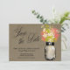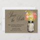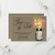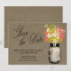 Mason Jar Save the Date: Perfect for a country style wedding or maybe you just love Mason Jars! Old vintage Mason Jar with shades of Cream, Salmon / Coral, and Dark Lime / Chartreuse wildflowers. A Dark Burlap Background is set. If you have any questions on this design or want a colour change please email me paula@labellarue.com PICK YOUR PAPER CHOICE: This is set to print on Basic however you can pick an alternate cardstock.