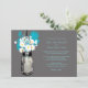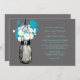 Perfect for a country style wedding or maybe you just love Mason Jars! Mason Jar hanging on a hook filled with country wildflowers. A Cool Charcoal Grey background against the hanging Mason Jar and wildflowers in colours of aqua and white daisies. If you have any questions on this design or want a colour change please email me paula@labellarue.com Also check for the RSVP, RECEPTION and GUEST SEATING Cards to match!