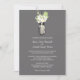 Perfect for a country style wedding or maybe you just love Mason Jars! Mason Jar hanging on a hook filled with country wildflowers. A Slate Grey background against the hanging Mason Jar and wildflowers in colours of green and white daisies. If you have any questions on this design or want a colour change please email me paula@labellarue.com Also check for the RSVP, RECEPTION and GUEST SEATING Cards to match!