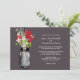 Perfect for a country style wedding or maybe you just love Mason Jars! Mason Jar hanging on a hook filled with country wildflowers. A antique faded grey plum (XDS3283) background against the hanging Mason Jar and wildflowers in colours of shades of Apple Red, Cream and Green. If you have any questions on this design or want a colour change please email me paula@labellarue.com Also check for the RSVP, RECEPTION and GUEST SEATING Cards to match!