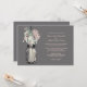 Perfect for a country style wedding or maybe you just love Mason Jars! Mason Jar hanging on a hook filled with country wildflowers. A Slate Grey background against the hanging Mason Jar and wildflowers in colours of soft peach, dusty aqua and rose brown. If you have any questions on this design or want a colour change please email me paula@labellarue.com Also check for the RSVP, RECEPTION and GUEST SEATING Cards to match!