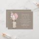Perfect for a country style wedding or maybe you just love Mason Jars! Mason Jar hanging on a hook filled with country wildflowers. A Warm Brown background against the hanging Mason Jar and wildflowers in colours of pinks and white. If you have any questions on this design or want a colour change please email me paula@labellarue.com Also check for the RSVP, RECEPTION and GUEST SEATING Cards to match!