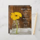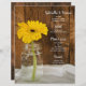 Customise the rustic chic Mason Jar and Yellow Daisy Country Wedding Menu with the details of the meal that you will serve at your casual yet classy bridal shower luncheon, marriage reception dinner or post wedding brunch by adding the salad or first course, entree or second course and dessert or third course. Personalise it with the names of the bride and groom, venue location and event date. This charming wedding menu features a digitally enhanced floral photograph of a glass canning jar filled with a yellow daisy flower blossom and a brown weathered barn wood background. Perfect inspo for an informal ranch or farm style barn party celebration event.