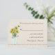 A whimsical, summer-theme, response card that's sure to delight everyone! The off-white canvas background has a teal mason jar filled with sunflowers and tied with a string. A lazy little bee circles the flowers. The bee can be dragged to any location, made larger or smaller or eliminated.