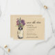 Perfect for a country style wedding or maybe you just love Mason Jars! Old vintage Mason Jar hanging on a hook with country wildflowers. A distressed cream background colour with black drawing of a Mason Jar filled with Plum, Framboise Violet, Storm Blue and Green country wildflowers. If you have any questions on this design or want a colour change please email me paula@labellarue.com Also check out the WEDDING INVITATIONS, RSVP, RECEPTION and GUEST SEATING Cards to match!
