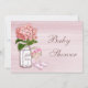 Mason Jar, Baby Girl, Pink Hydrangea Baby Shower Invitation