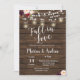 Mason jar String light Fall in love rustic couple shower invite card with rustic and wood background.