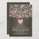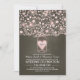 Beautiful rustic brown wedding invitation with mason jar full of white - pink flower blossoms, leaves, tree branches and glowing love hearts. Perfect casual invite for your rustic country wedding with floral mason jars.