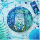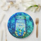 A mason jar of glowing fireflies or lightning bugs against a starry night background. An elegnt country rustic design. In colours of blue, green and yellow.