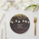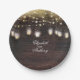 Gold glitter and mason jar string lights rustic wedding paper plates