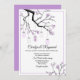 Stylish wedding invitation done in white and lavender, with graphics of a flowering tree branch with mason jar lights hanging down. Personalise all the text to suit your wedding needs. Matching products are available.