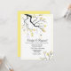 Stylish wedding invitation done in white and yellow, with graphics of a flowering tree branch with mason jar lights hanging down. Personalise all the text to suit your wedding needs. Matching products are available.