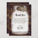 Custom rustic mason jar wedding thank you card featuring a mason jar and two burlap hearts against a barn wood background. Easily personalise with your text and initials. Matching items available to complement this cute rustic wedding thank you card.