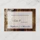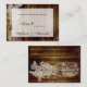 TAble place cards for wedding seating. Mason jar stamped image in white, on a dark brown wood plank background image (not real wood). A semi grungy outdoor theme for a country summer or cabin wedding. THE dark chocolate brown wooden boards from an antique fence or floorboards contrast against a white cutout stamped outline image of a mason jar with baby's breath and other lacy wildflowers. All Designs Copyright © www.CustomInvitesOnline.com