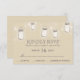 This rustic wedding RSVP card features a blush pink background with glowing mason jars and string lights. Background colour can be customised to match your event theme.