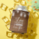 This rustic custom wedding can cooler features the phrase "To love, laughter, and happily ever after" on a distressed barn wood background bordered with glowing mason jars and string lights. Customise the other side with your initials, names, and wedding date.