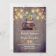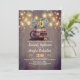 Dreamy mason jar string lights, old wood barrel, yellow sunflowers... this is the most beautiful invitation for your late summer, fall rehearsal dinner