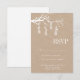 A classic style wedding RSVP card that co-ordinates with the invitation with a mason jar theme. Featuring hanging mason jars & flowers on a kraft coloured background. Classic fonts and text personalised for your special day