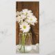 Customize the elegant Mason jar and White Daisies Country Barn Wedding Menu with the details of the meal that you will serve at your informal farm style marriage reception dinner, bridal shower luncheon or wedding brunch. This charming custom rustic chic wedding menu features a quaint digitally enhanced floral photograph of a glass canning jar filled with white daisy flower blossoms and a brown weathered barn wood background. Perfect inspo for your casual barn party celebration event.