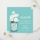 Perfect for a country style wedding or maybe you just love Mason Jars! Mason Jar with white Gerber daisies. Little Blue Box Teal colour with black drawing of a Mason Jar filled with artsy white daisies. If you have any questions on this design or want a colour change please email me paula@labellarue.com
