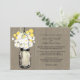 Perfect for a country style wedding or maybe you just love Mason Jars! Mason Jar hanging on a hook filled with country wildflowers. A Dark Taupe (X07531) old wood grain panel background against the hanging Mason Jar with yellow Billy Balls and wild white daisies. If you have any questions on this design or want a colour change please email me paula@labellarue.com Also check for the RSVP, RECEPTION and GUEST SEATING Cards to match!