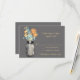 Matching RSVP card perfect for a country style wedding or maybe you just love Mason Jars! Mason Jar hanging on a hook filled with country wildflowers. A Slate Grey background against the hanging Mason Jar and wildflowers colours of light blues, yellows and orange. If you have any questions on this design or want a colour change please email me paula@labellarue.com Also check for the RSVP, RECEPTION and GUEST SEATING Cards to match!
