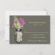 Matching RSVP card perfect for a country style wedding or maybe you just love Mason Jars! Mason Jar hanging on a hook filled with country wildflowers. A Dark Grey with a hint of Yellow background against the hanging Mason Jar and wildflowers colours of green, pink and fuchsia wildflowers. If you have any questions on this design or want a colour change please email me paula@labellarue.com Also check for the RSVP, RECEPTION and GUEST SEATING Cards to match!