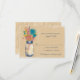Matching RSVP card perfect for a country style wedding or maybe you just love Mason Jars! A Vintage distressed background with the hanging Mason Jar and wildflowers in colours of shades of rustics teals, rose and gold. For enquiries about custom design changes by the independent designer please email paula@labellarue.com BEFORE you customise or place an order.
