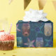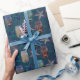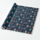 Whimsical starry blue gift wrap decorated with mason jars and bohemian patterned stars.